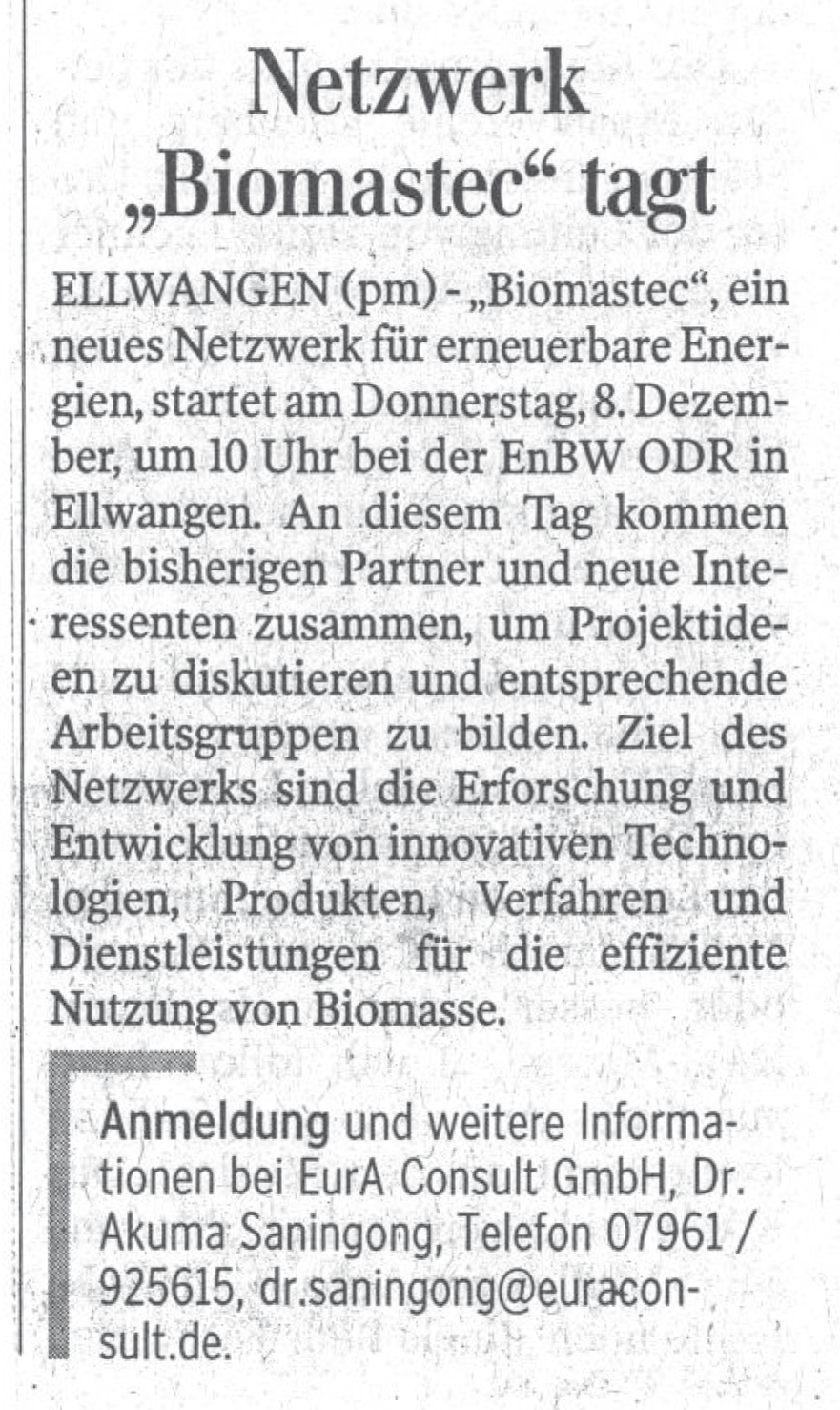 The sixth industrial revolution is bio-based Cooperation cluster to strengthen a bio-based economy By Dr. Akuma Saningong, Cluster Manager biomastec, EurA AG